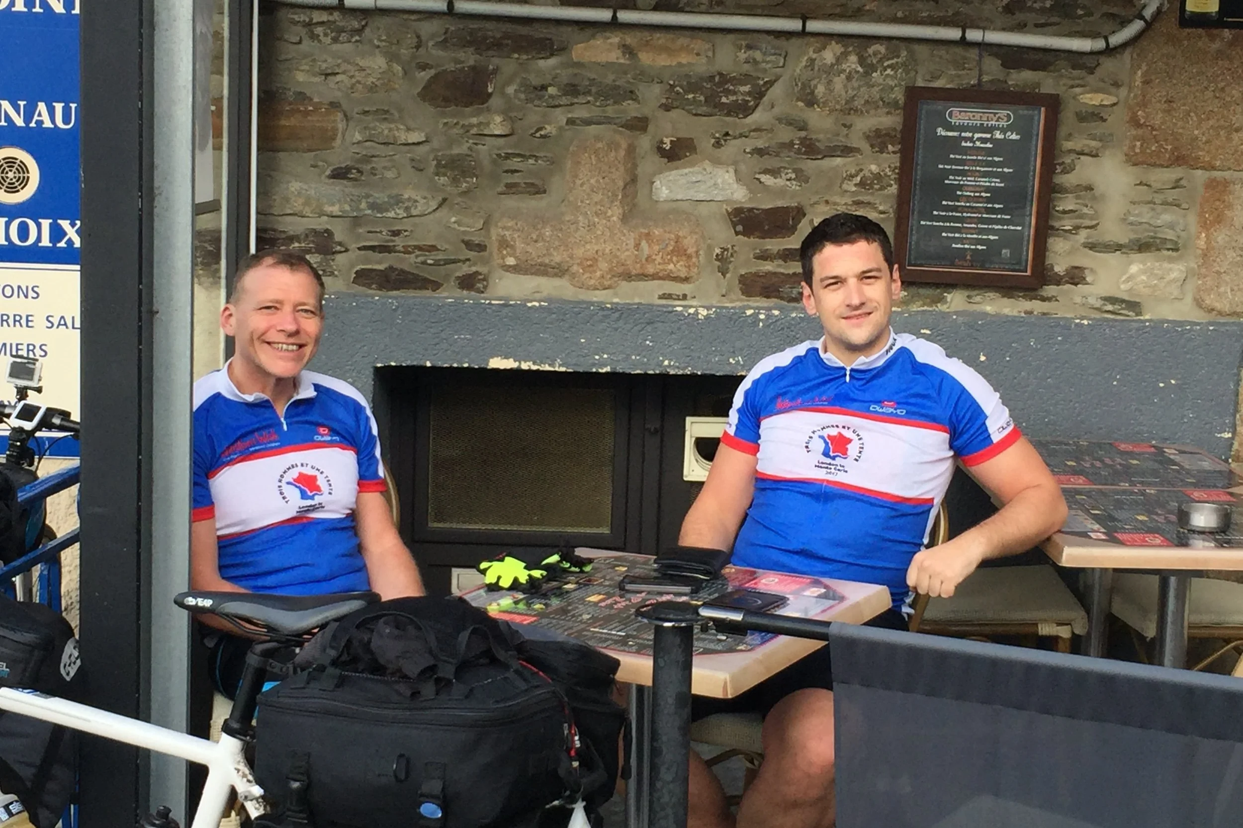 We have managed to avoid the rain for a day and half but inevitably we do get wet today….not a proper drenching but enough to make you wonder why the hell you are doing this. It also means very slippy roads and we have our first and hopefully last accident ..Marc takes a hard fall on his shoulder and wrist as we cycle through Vitre. He is really lucky to escape without a serious injury.