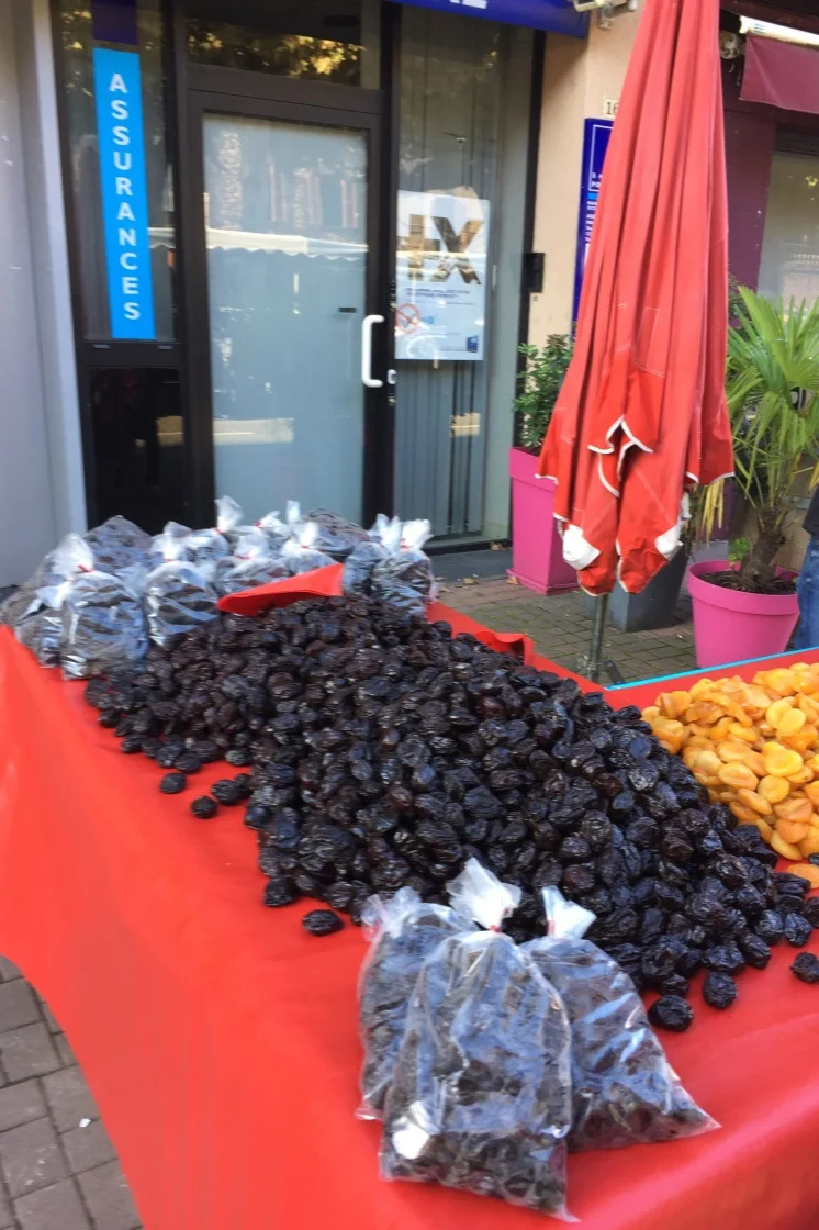 Eventually after climbing forever we arrive in Marcillac which will hence forth forever be known as “icytown”….I swear to god it has never even seen the sun it was so cold. There was a bit of a hubbub with a Sunday market going on….prunes seemed to be the thing….